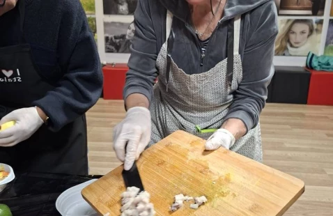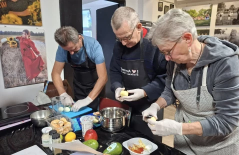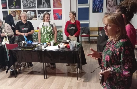 Pracowaliśmy w zespołach, a każdy z nich przygotował trzy różne, pyszne i pełne wartości odżywczych pasty. Wspólne krojenie, gotowanie, blendowanie i doprawianie wypełniło salę rozmowami, śmiechem i cudownymi aromatami. Po zakończonej pracy mieliśmy okazję spróbować wszystkich przygotowanych past – każda z nich była inna, wyjątkowa i w 100% zdrowa.