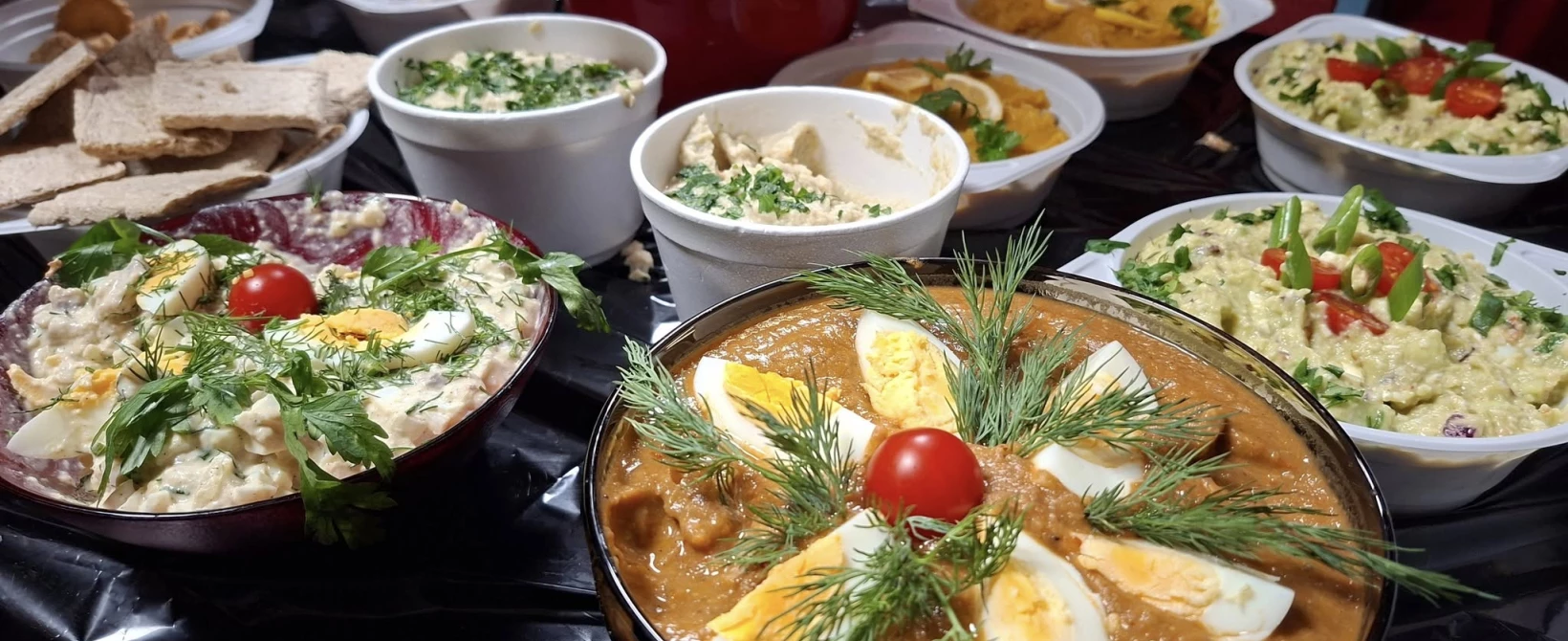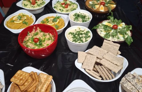 Alergie na składniki, np. ryby, jajka, sezam (w hummusie).